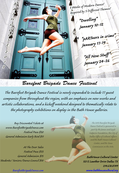 Milton Adams (FW), ChinaCat Dance (Houston), Circuitous Dance/Kate Warren (Austin), Collective Force Dance Company (FW), Dance Club (Austin), Dance Unending(Lewisville), Jenefer Davies (VA), DGDG – Danielle Georgiou Dance Group (Dallas), Melissa Eidson, Marea Productions, FireWalk Dance (Frisco), The Fort Worth Poetry Society, Kathy Dunn Hamrick Dance Company (Austin), imPULSE dance project (Lewisville), Tina Mullone (LA/TX), Amy Myers & Chris Archer (Austin), Sarah Newton (Dallas), Claudia Orcasitas (Euless), Crickett Pettigrew (FW), Preston Contemporary Dance Theatre (FL), Project IN Motion (NM), Marianne Shih (Dallas), Nikki DeShea Smith (Euless), SOUND CULTURE/Tammy Gomez (FW), Ronald Watson (FW), Tim Wilkendorf (MN)